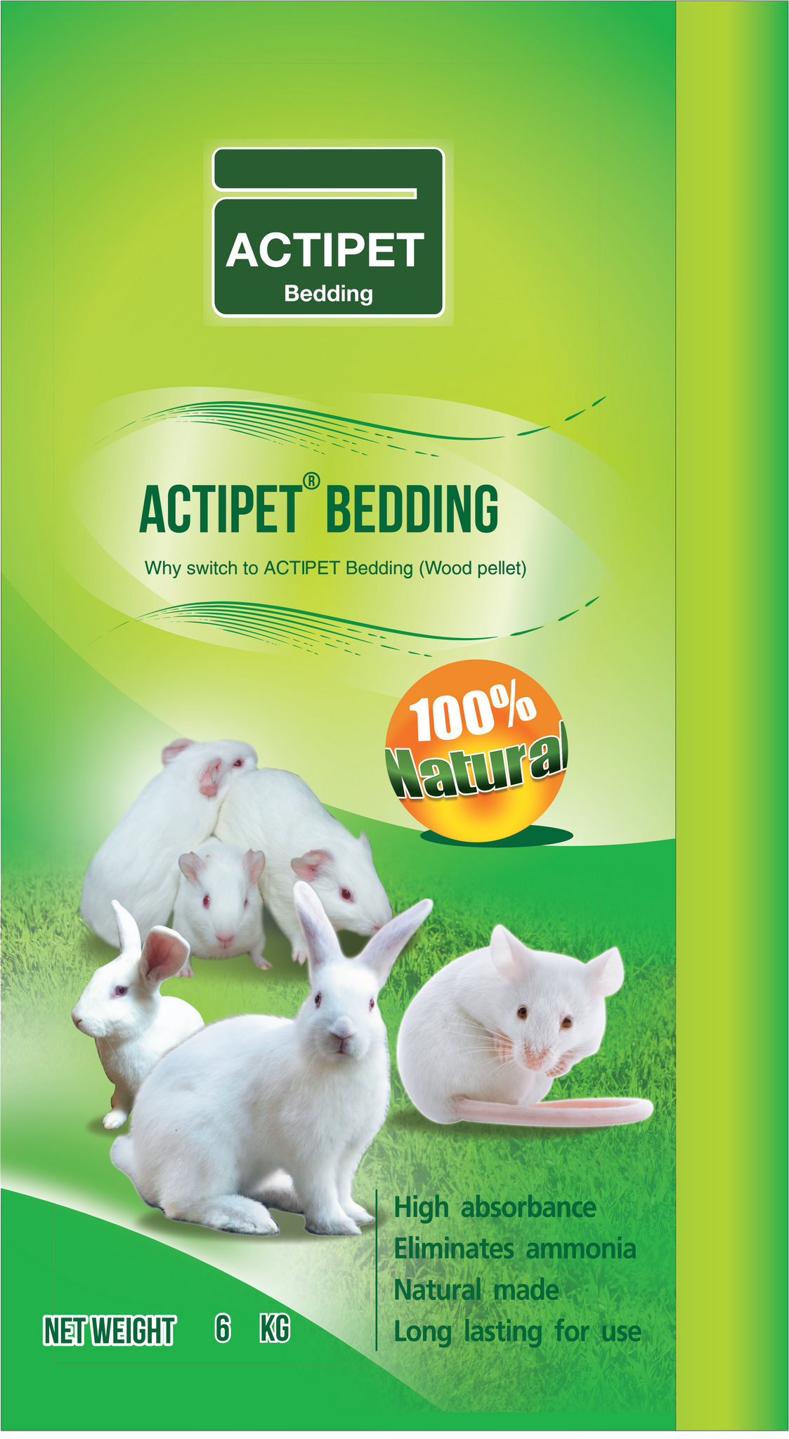 Actipet Bedding ผลิตจากวัสดุธรรมชาติ สามารถดูดซับความชื้น ดูดซับการขับถ่ายของสัตว์ ย่อยสลายได้เองตามธรรมชาติ ไม่มีสารพิษตกค้าง ใช้เป็นวัสดุปูรองพื้นกรงและปูรองนอน มีรูปแบบผลิตภัณฑ์หลายชนิด ได้แก่ ไม้สนอัดเม็ด กระดาษอัดเม็ด แกนปอสับ และขี้เลื่อย มากกว่านั้นทางเรามีวัสดุรองนอนสำหรับสัตว์ที่ใช้ในวิจัยอีกด้วย หรือท่านสามารถเลือกประเภทของวัสดุลองนอนแต่ละประเภทมาผสมกันในรูปแบบที่ท่านต้องการ