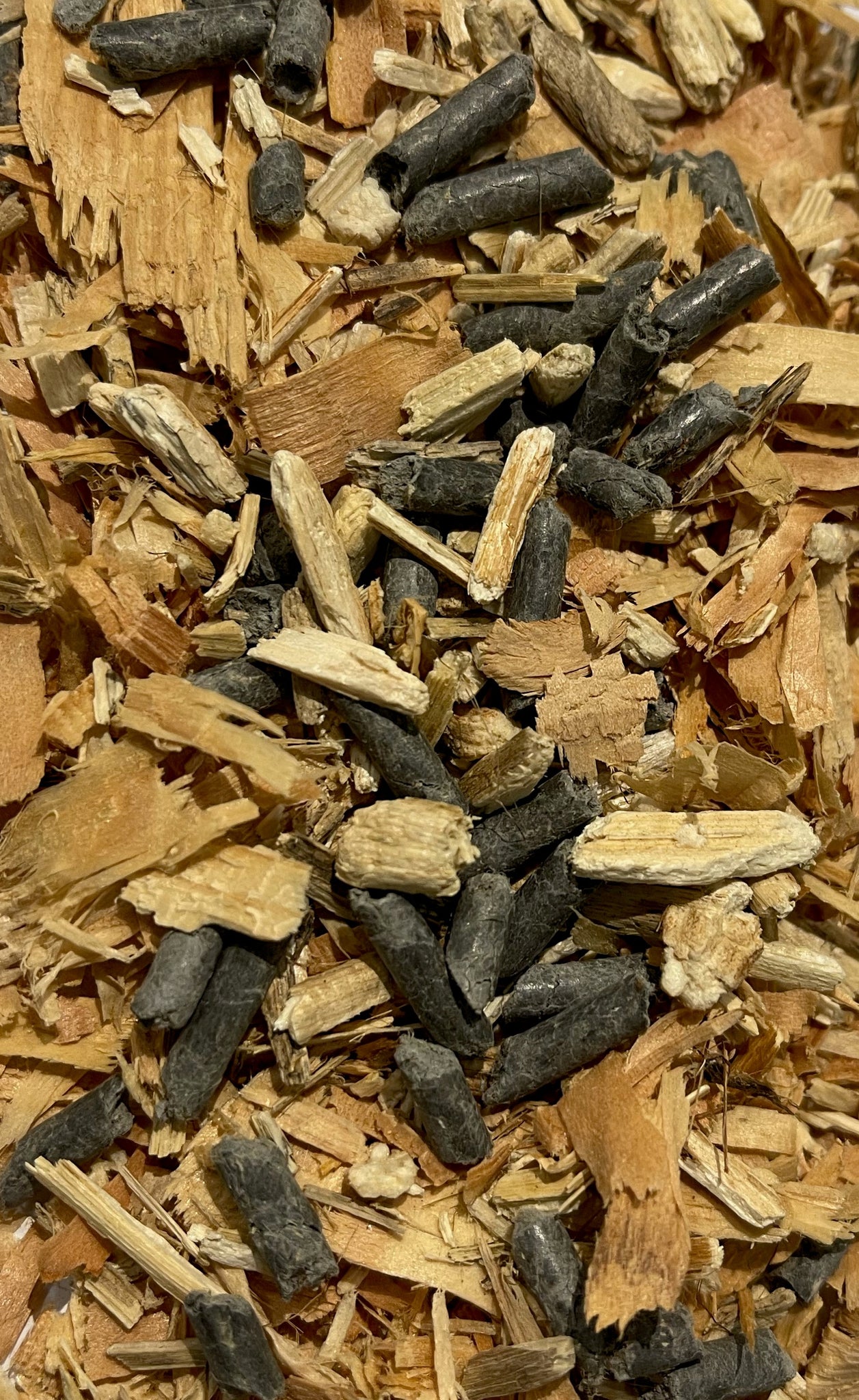 แบบผสม 3 ประเภท กระดาษอัดเม็ด+ขี้เลื่อย+แกนปอสับ Paper pellet + Wood Shaving + Wood Chip